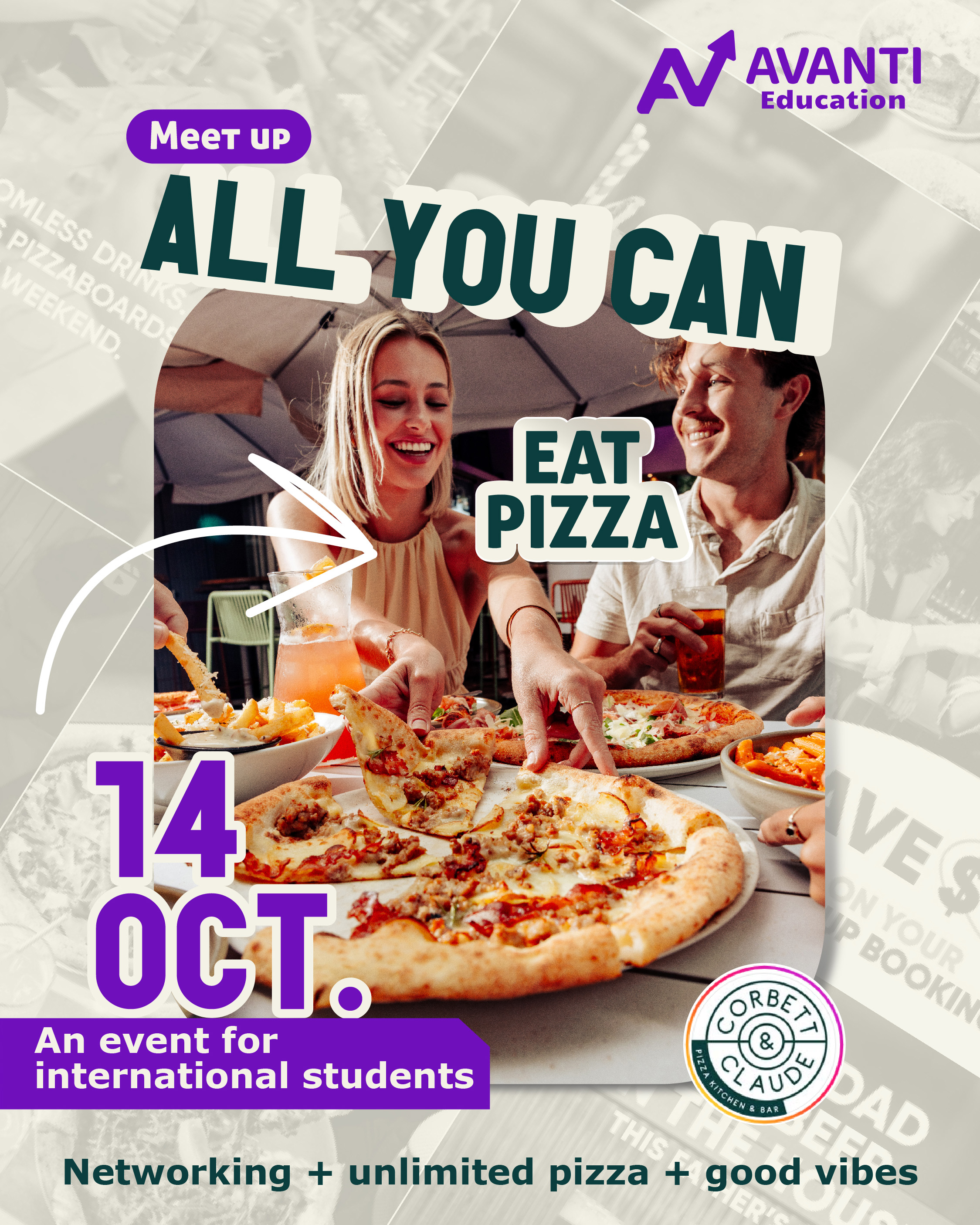 Unlimited pizza, networking, and good vibes for international students! ๐
